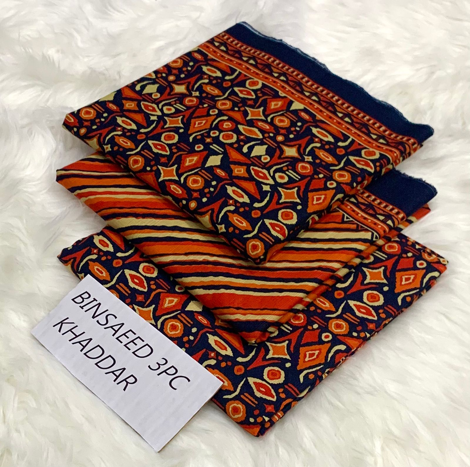 Bin Saeed Original Khaddar 3PC – Elegant Allover Print with Dyed Trouser & Premium Dupatta