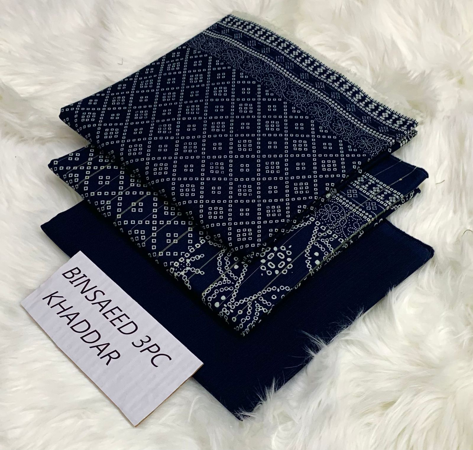 Bin Saeed Original Khaddar 3PC – Elegant Allover Print with Dyed Trouser & Premium Dupatta
