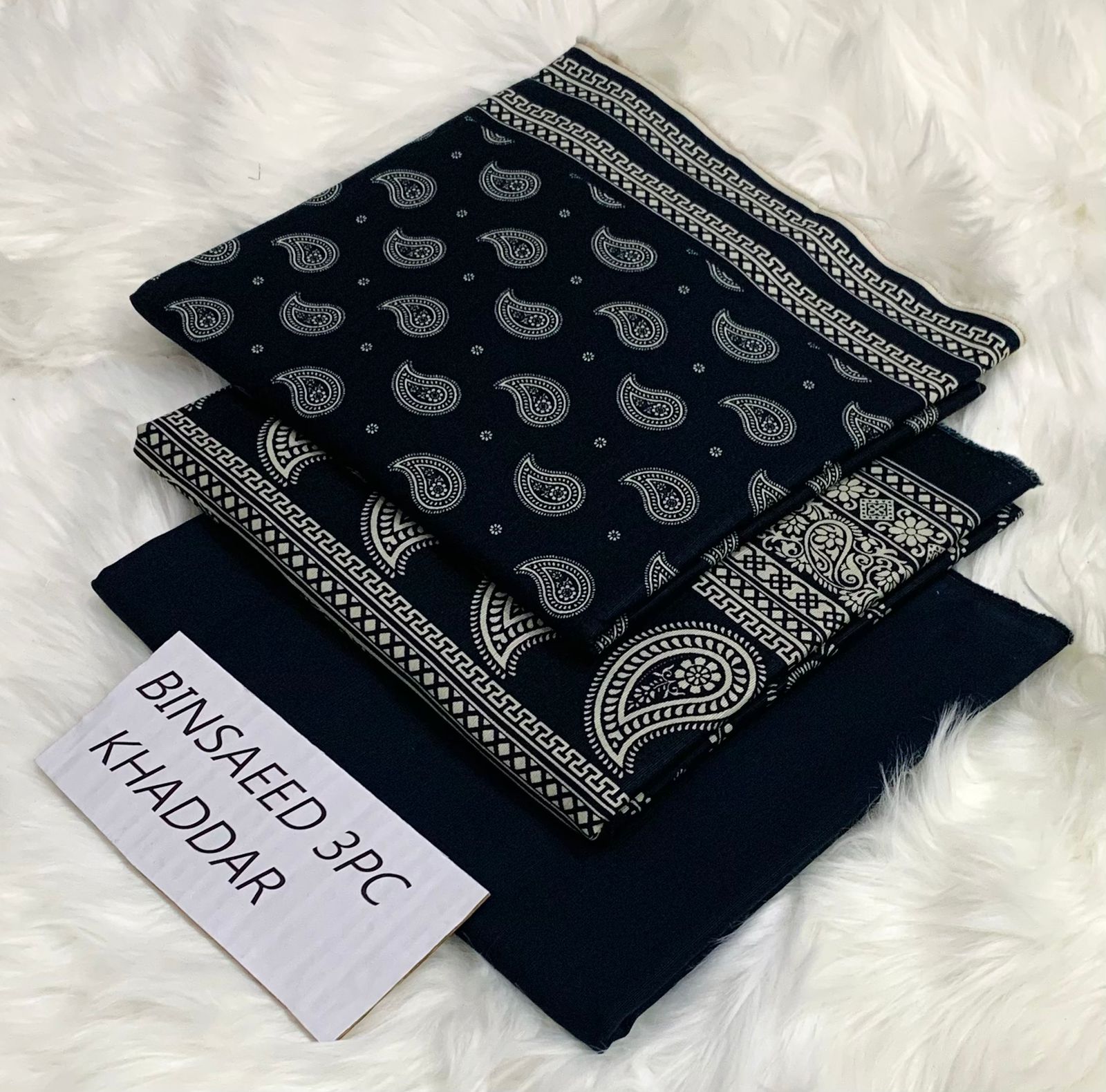 Bin Saeed Original Khaddar 3PC – Elegant Allover Print with Dyed Trouser & Premium Dupatta