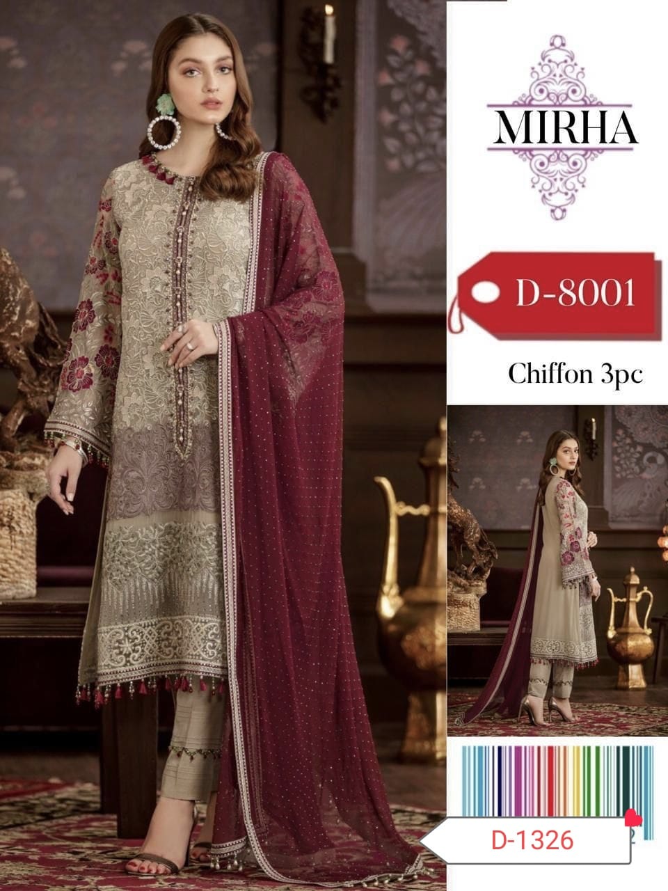The Flossie Luxury 8001 Collection (Master Copy) is an embodiment of elegance, luxury, and fine craftsmanship. Designed for women who love to wear premium ethnic wear, this suit is crafted with chiffon and features exquisite embroidery that makes it ideal for weddings, festive events, and special occasions.