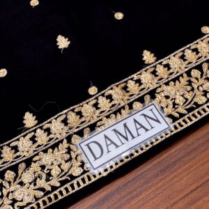 Daman (Front & Back): Embroidered with rich sequence detailing