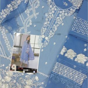 Embroidered Organza 3pc Suit – Thread & Sequins Work with Dupatta & Trouser
