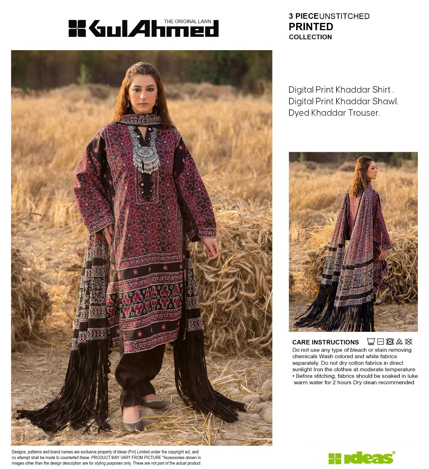💯 Original Gul Ahmed Khaddar Fabric