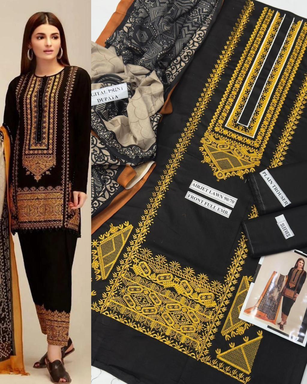 ✨ Fabric: Premium Lawn Airjet 90/70 – Soft, breathable & long-lasting fabric.