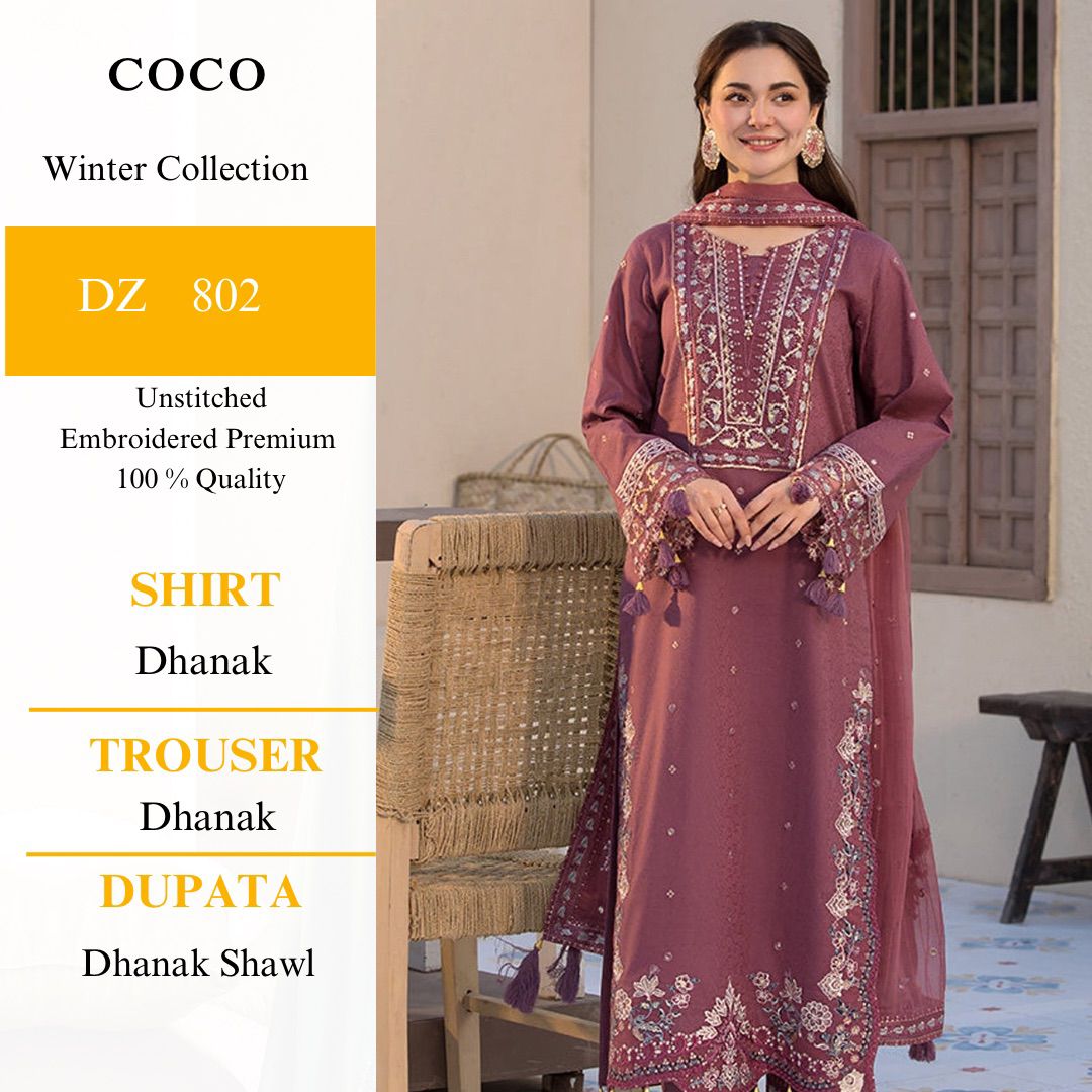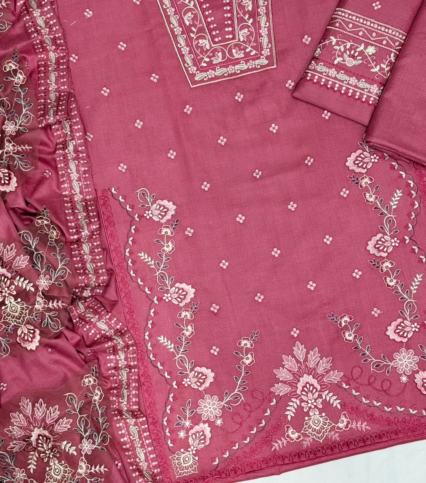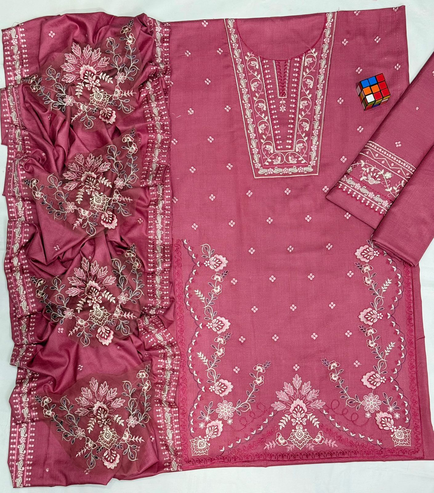 Upgrade your wardrobe with our exclusive Women’s Dhanak Fancy Party Wear Suit – designed for modern elegance and comfort. This 3-piece embroidered suit features: