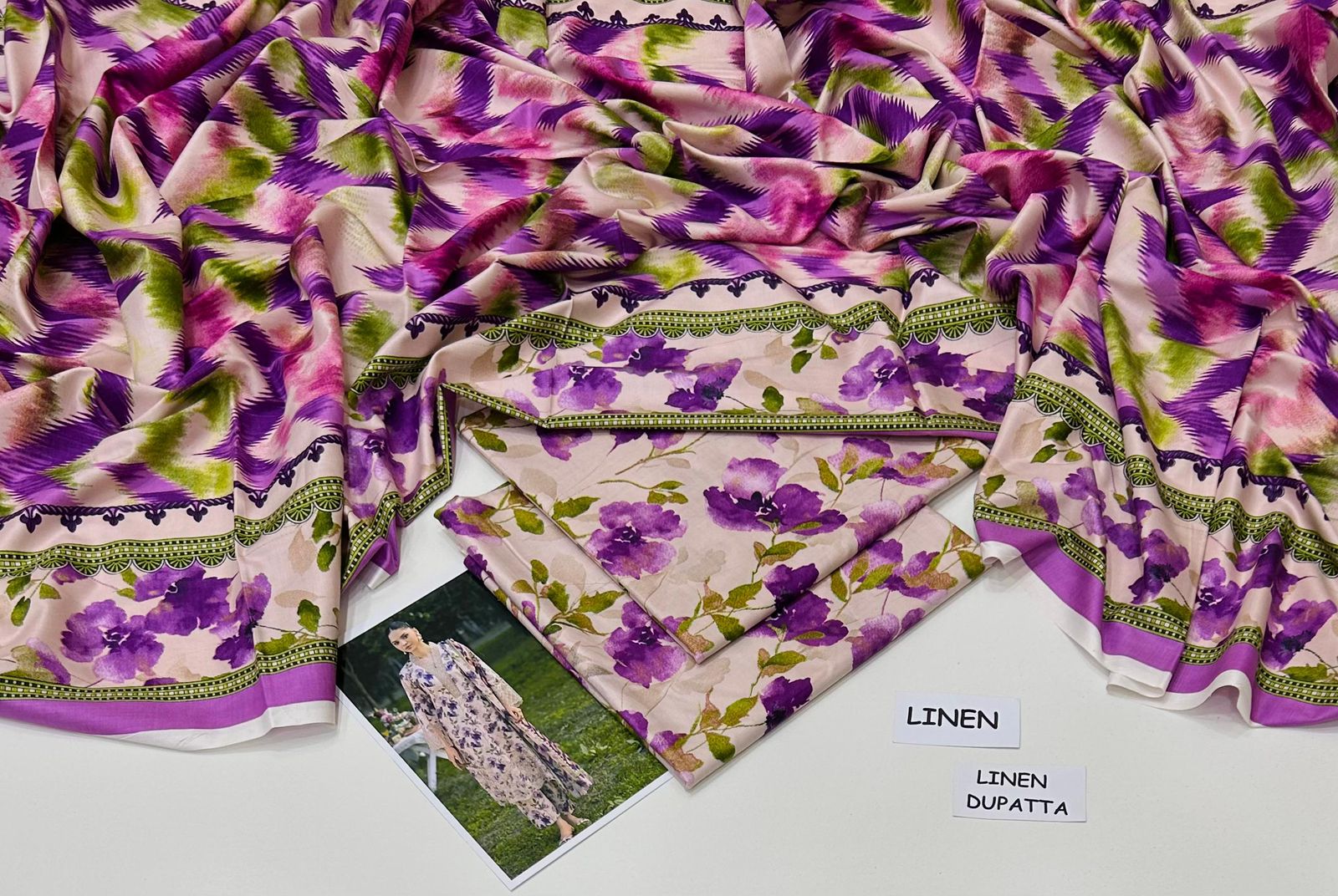 Maria B Linen Collection – 3pc 72/72 Allover Printed Suit with Digital Dupatta