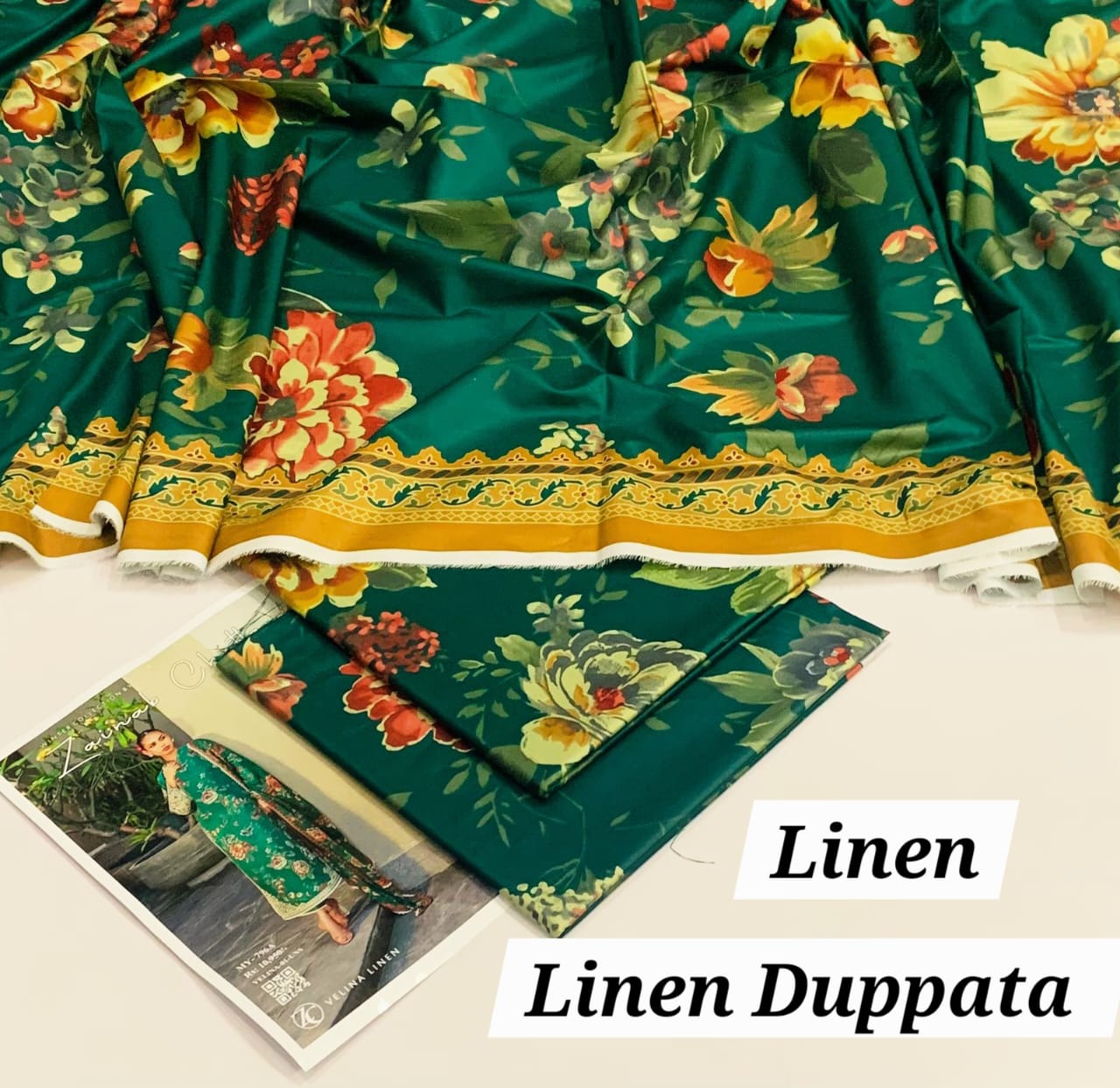 Dupatta: Elegant digital printed linen dupatta adding grace & style