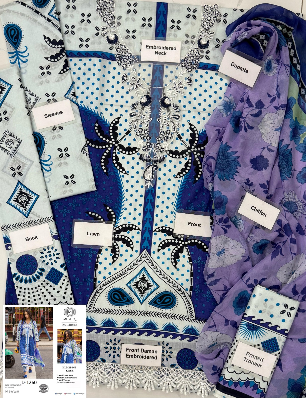 Be the first to review “Mushq Hemline 3-Pc Lawn & Chiffon Suit – Embroidered Daman Lace & Patch Detail”