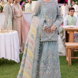 Dupatta (Organza): Heavily embroidered chiffon dupatta with four-sided borders. Ready-to-wear dupatta included for convenience.