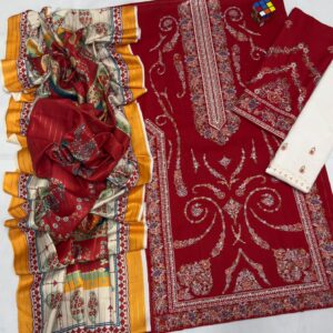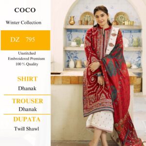 Upgrade your wardrobe with our exclusive Womenβs Dhanak Fancy Party Wear Suit β designed for modern elegance and comfort. This 3-piece embroidered suit features: