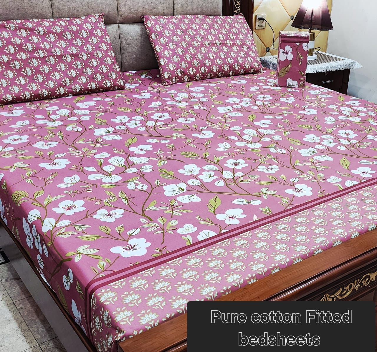 Premium Pure Cotton Fitted Bedsheet – Export Quality, Full Printed, 3-Piece Set